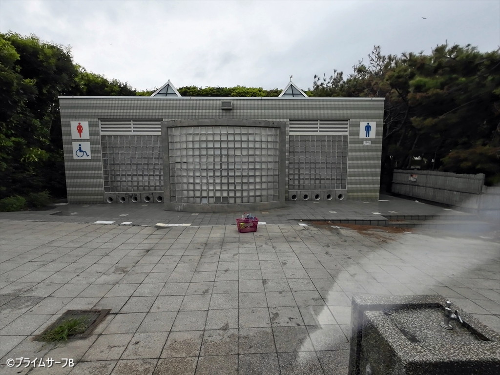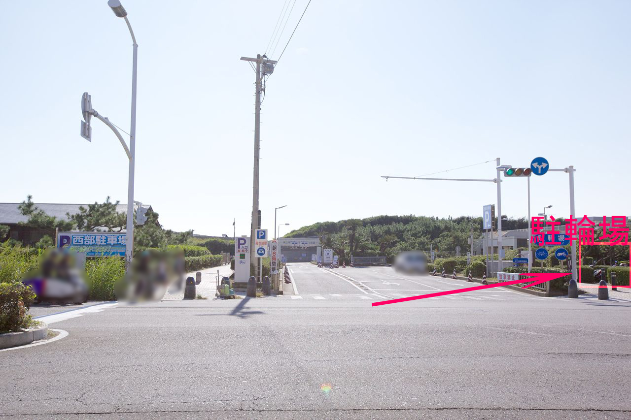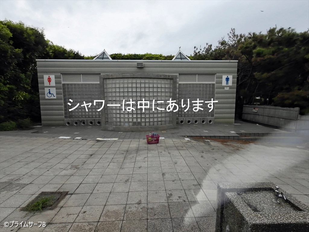 1.P3西部駐車場 出入口付近 ・ トイレ ・ シャワー ・ 駐輪場(オートバイ駐車可)